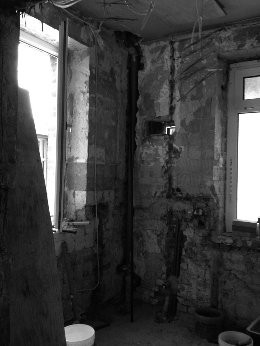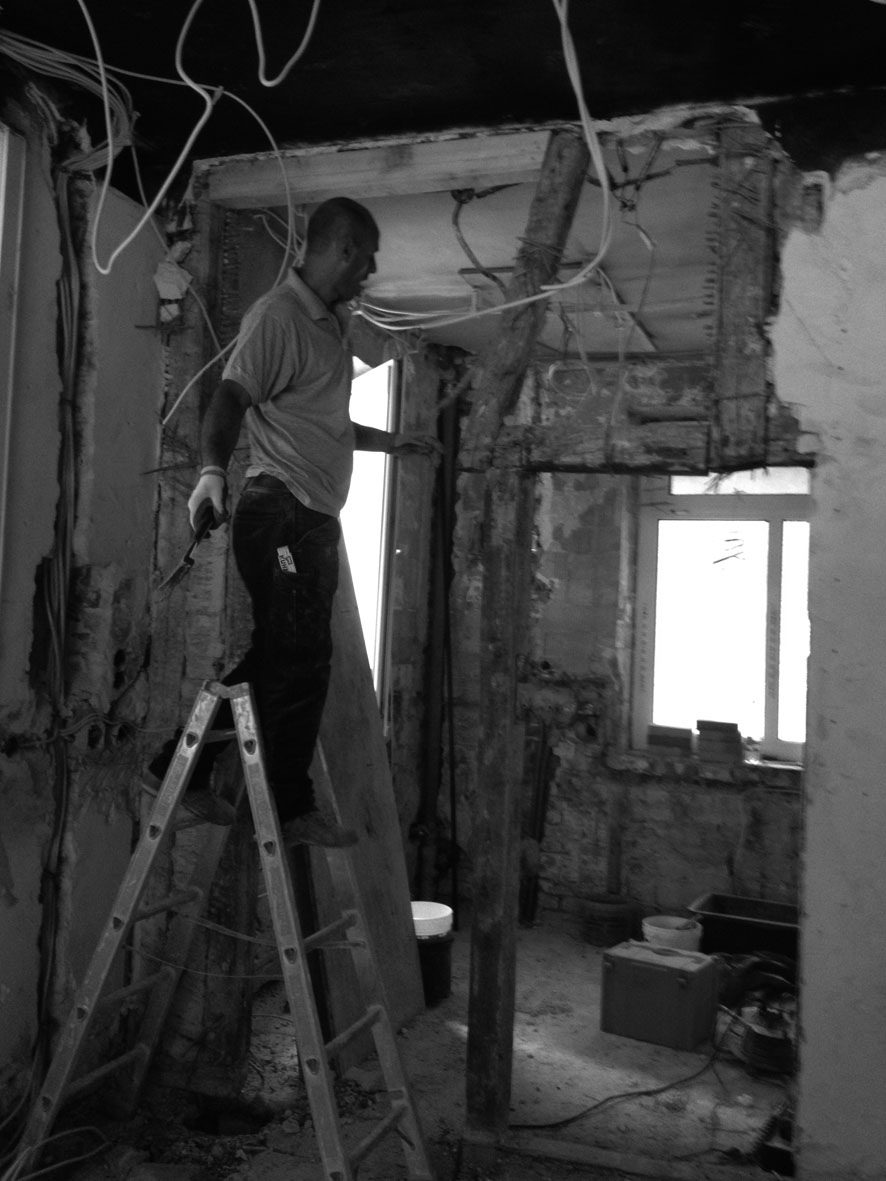 Nicht nur auf der Baustelle wird fleißig gearbeitet, sondern auch in der Schreinerwerkstatt. Die Vorbereitungen für die Einbaumöbel sind in vollem Gange. Die Grundform für die Theke ist fertiggestellt und auch das Weinregal für die Wand hinter der Theke.
